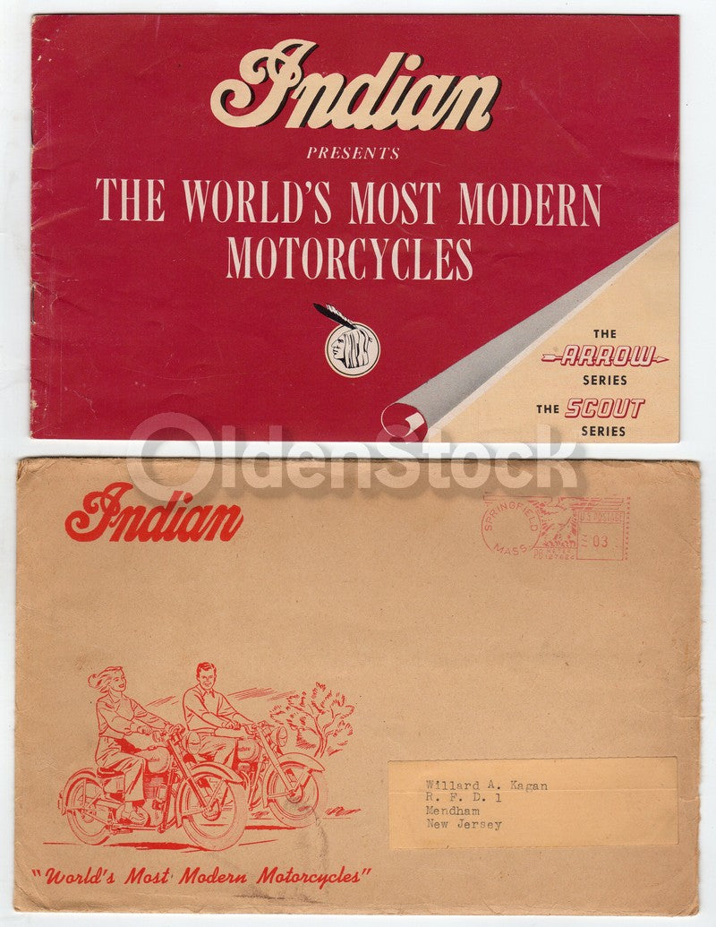 Indian Arrow and Scout Motorcycles Vintage Graphic Advertising Brochure 1949