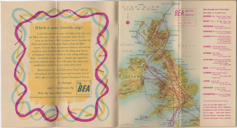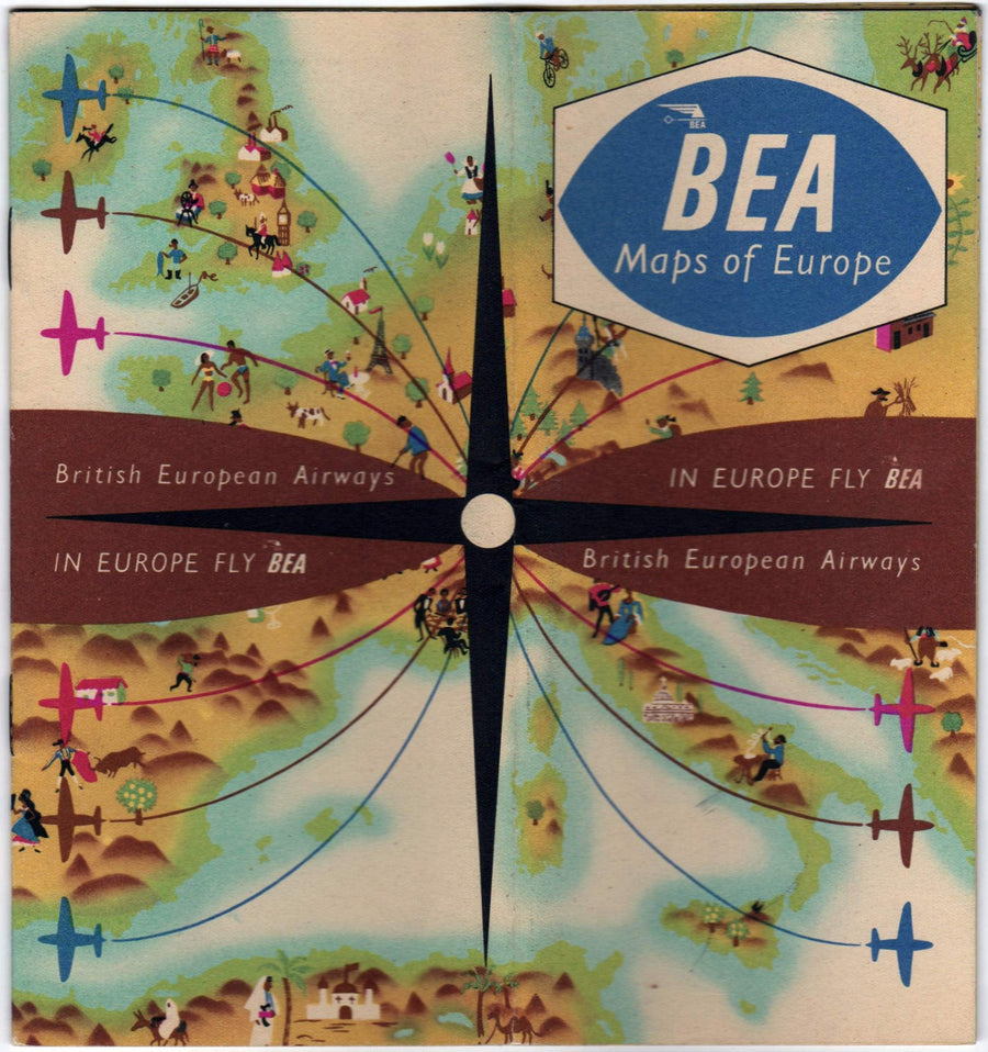 British European Airways BEA Flight Maps Vintage Advertising Travel Brochure