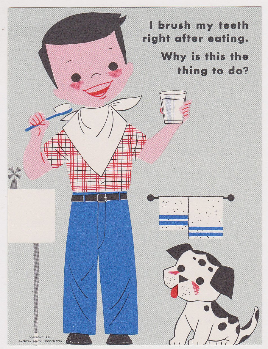 Why We Should Brush Our Teeth Cute Little Boy & Dog Vintage Dentists Office PSA Advertising Mini Poster