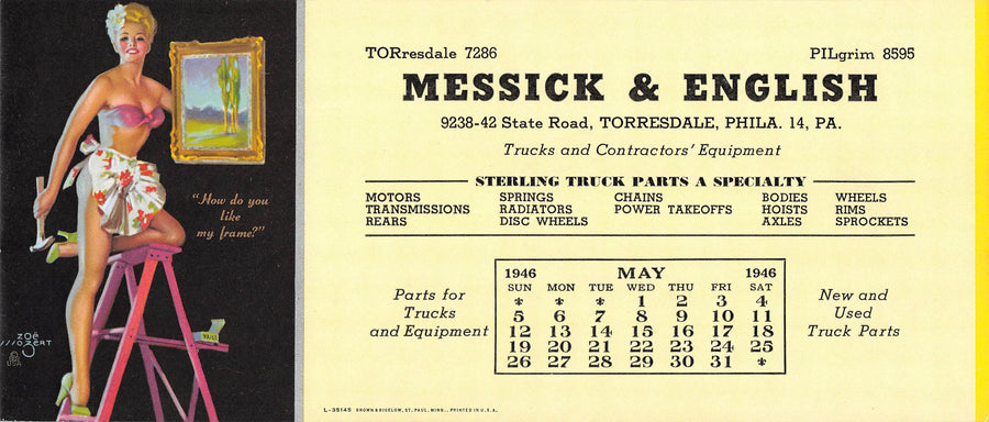 Zoe Mozert Painting Pin-up Girl Vintage Contractor's Advertising Ink Blotter