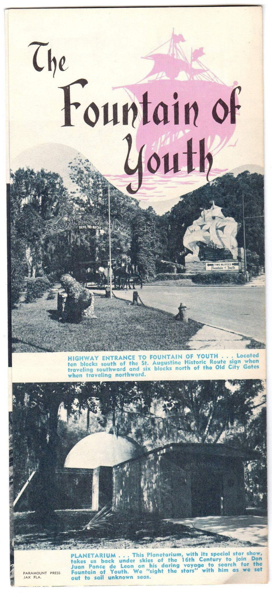 Fountain of Youth St. Augustine Florida Vintage Graphic Advertising Travel Brochure