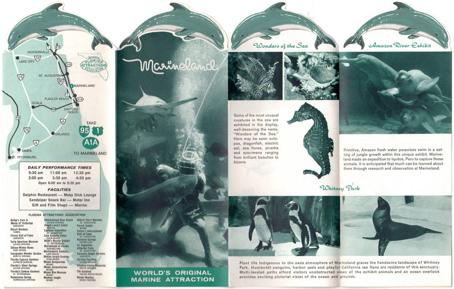 Marineland Florida Aquarium Vintage Dolphin Theme Graphic Advertising Brochure