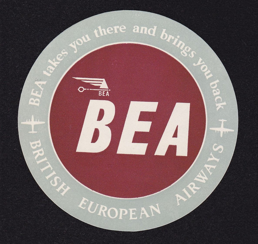 BEA British European Airways Airline Vintage Graphic Advertising Luggage Tag Sticker