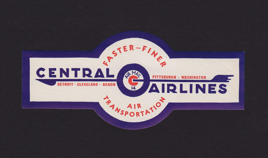 Central Airlines Airmail Carrier Vintage Graphic Advertising Luggage Sticker Decal