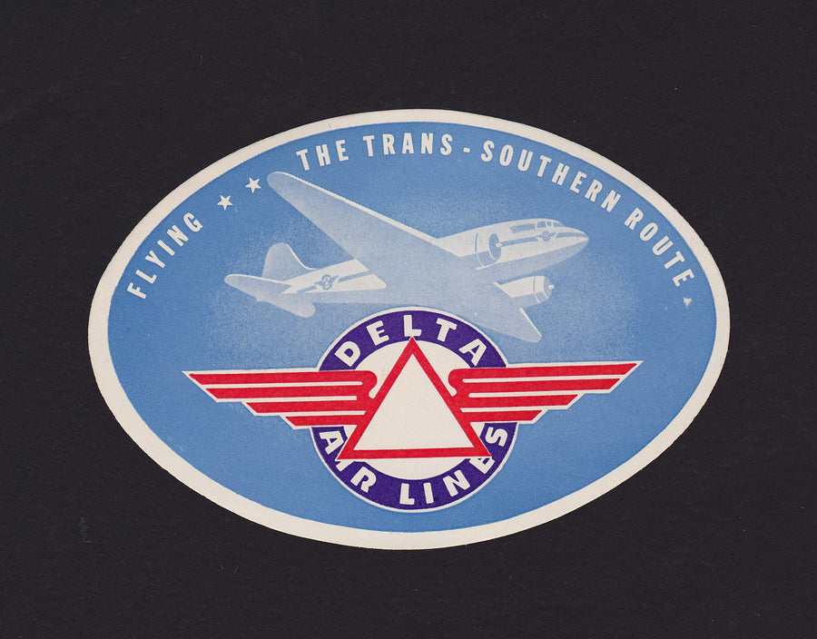 Delta Airlines Trans-Southern Route Vintage Graphic Advertising Luggage Sticker Decal