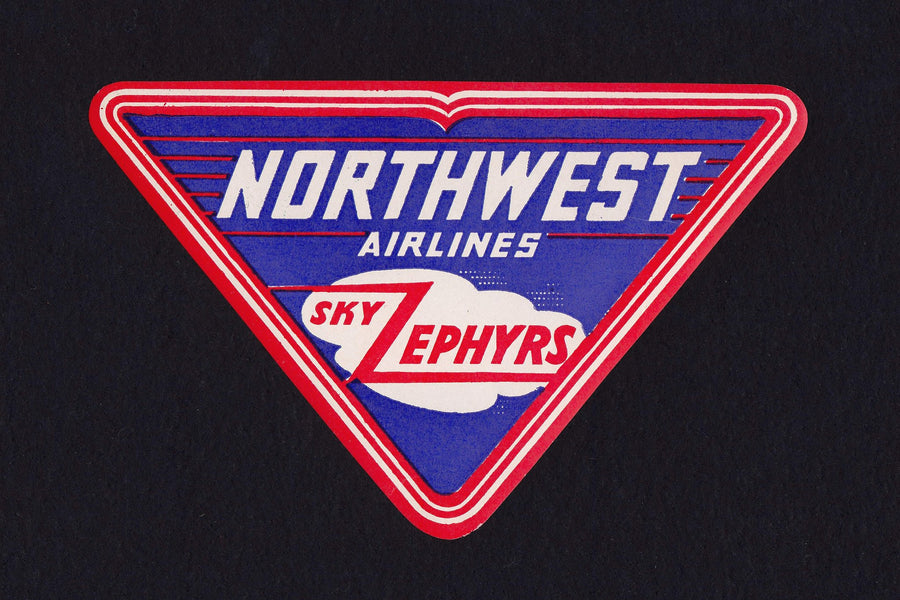 Northwest Airlines Sky Zephyrs Vintage Graphic Advertising Luggage Sticker Decal
