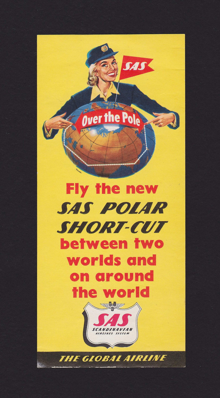 SAS Scandinavian Airlines Polar Route Vintage Graphic Advertising Luggage Sticker Decal