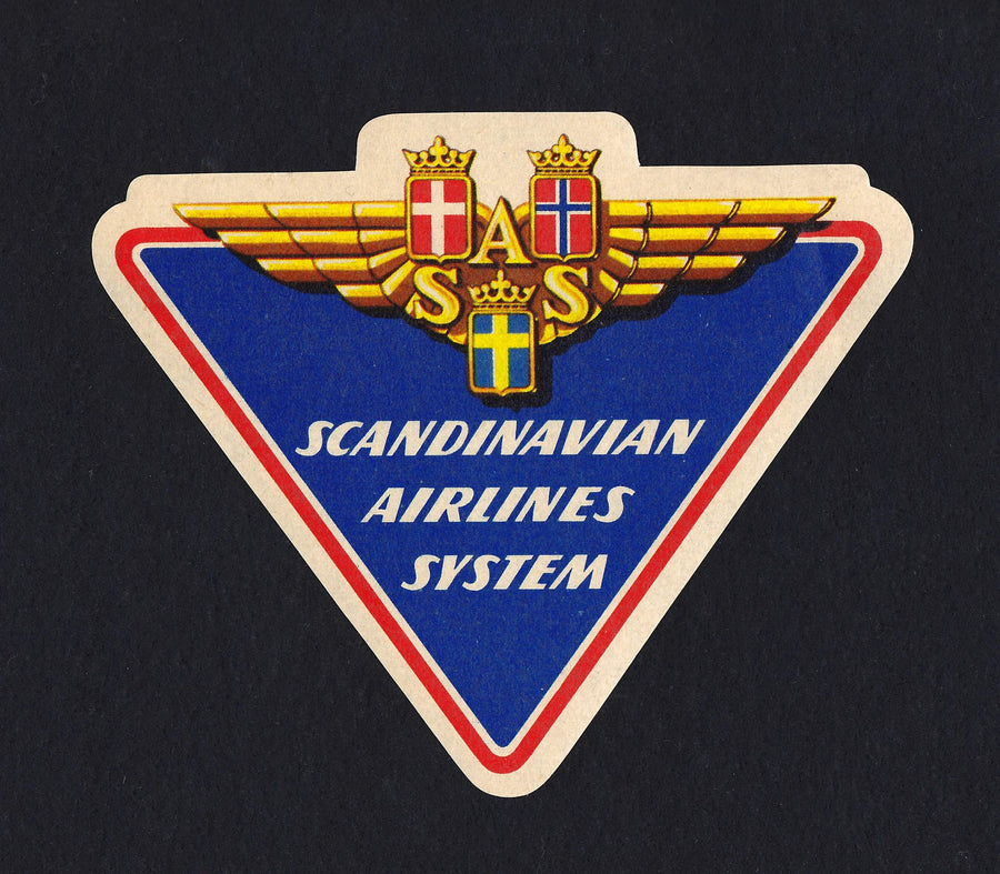 Scandinavian Airlines System Vintage SAS Graphic Advertising Luggage Sticker Decal