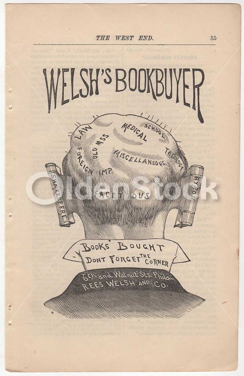 Welsh Book Buyer Philadelphia Antique Phrenology Literary Humor Advertising Print