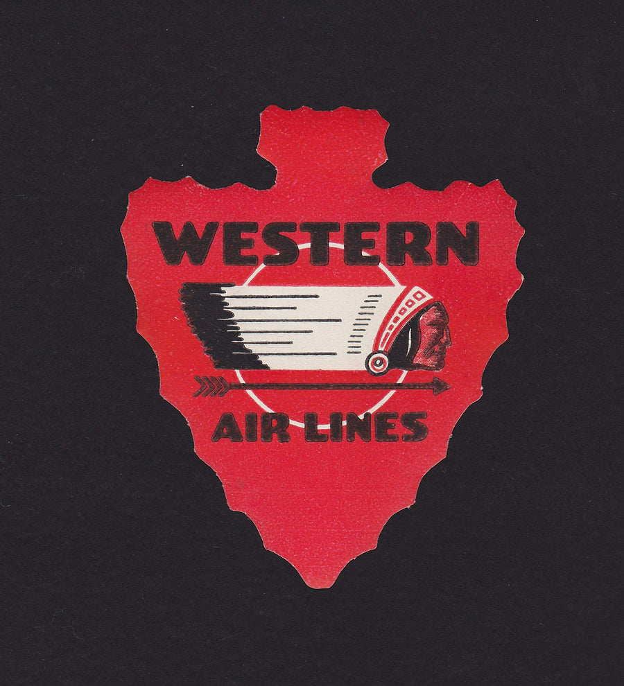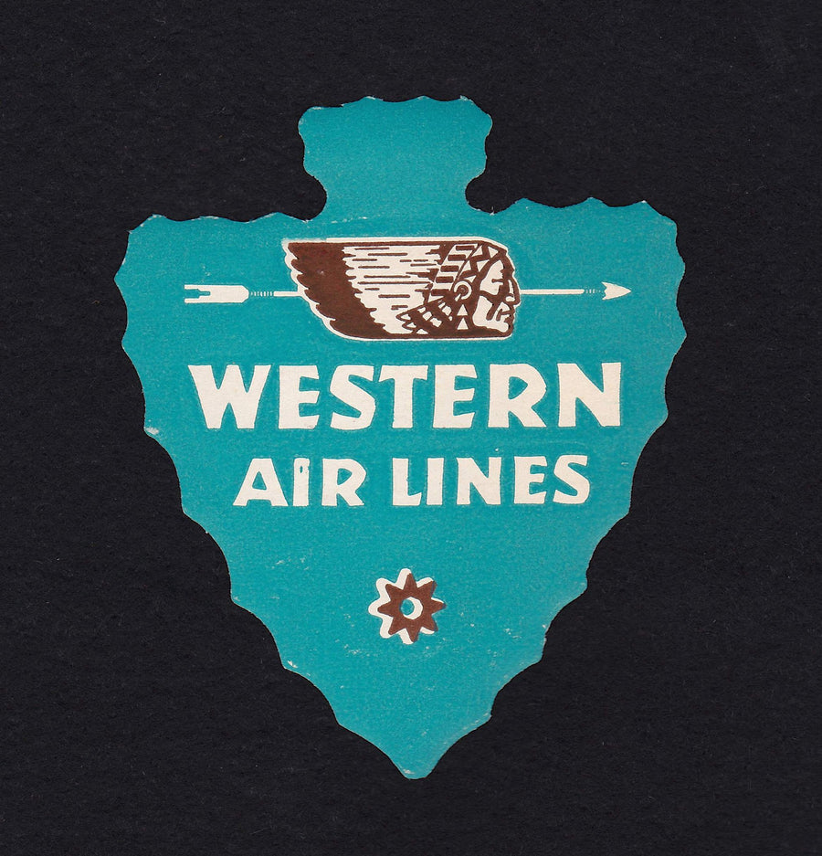 Western Airlines Native American Arrowhead Vintage Graphic Advertising Luggage Sticker Decal