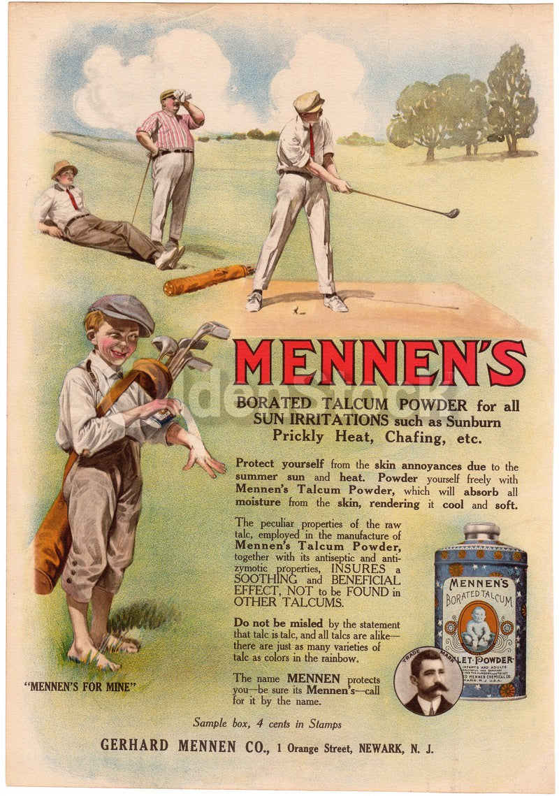 Mennen Talcum Sun Block Golfing Scene Antique Graphic Advertising Print 1912
