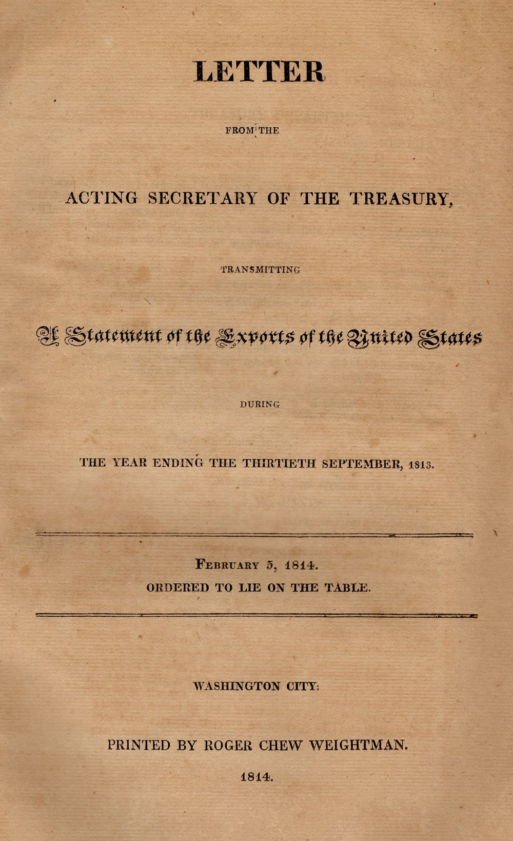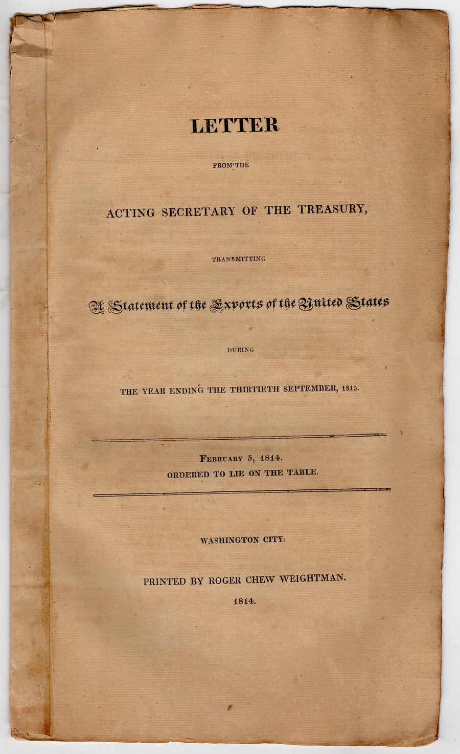 War of 1812 Economics United States Exports Political Financial Report Folio 1814
