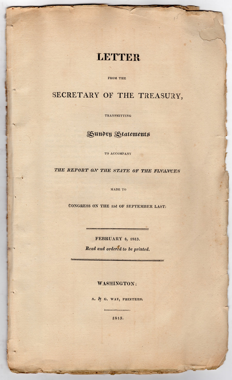 United States Treasury Official Booklet on Finance Import Duties Commodities 1815