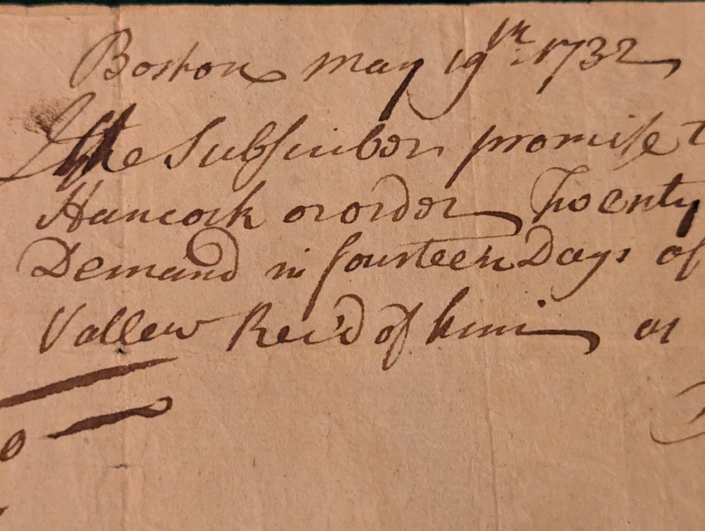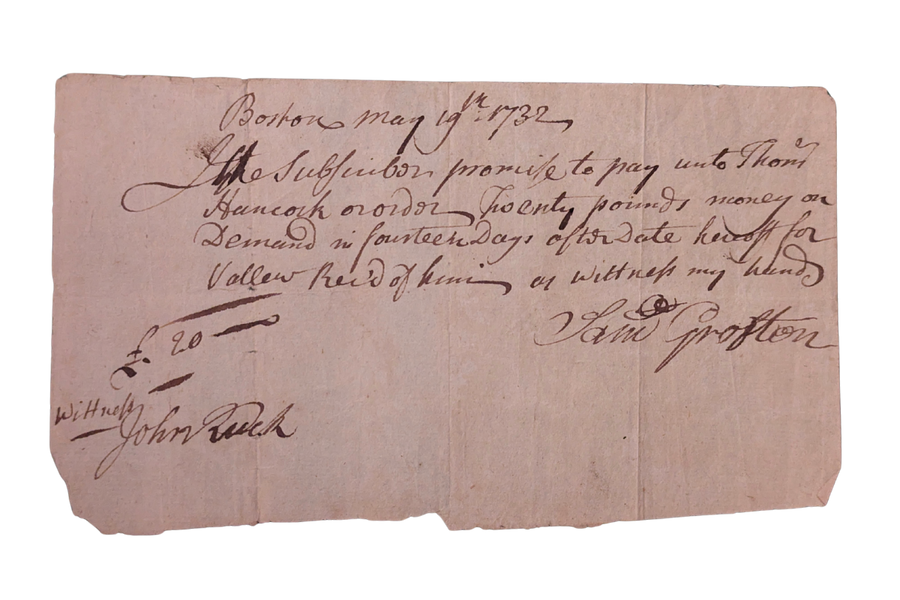 Thomas Hancock 1732 Promissory Note to Sam Grafton John Ruck of Boston MA
