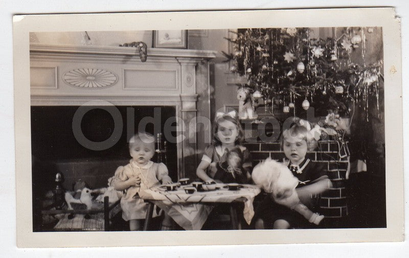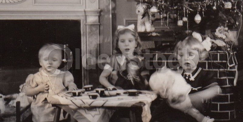Christmas Morning Tea Party under the Christmas Tree Vintage Snapshot Photo
