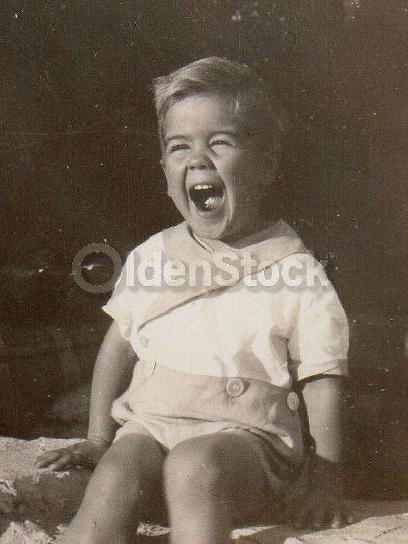 Jubilant Laughing Little Boy in Jumper Vintage Americana Snapshot Photo