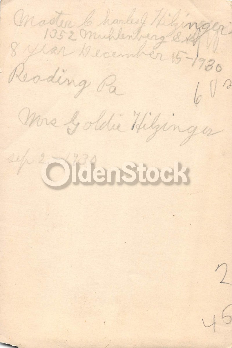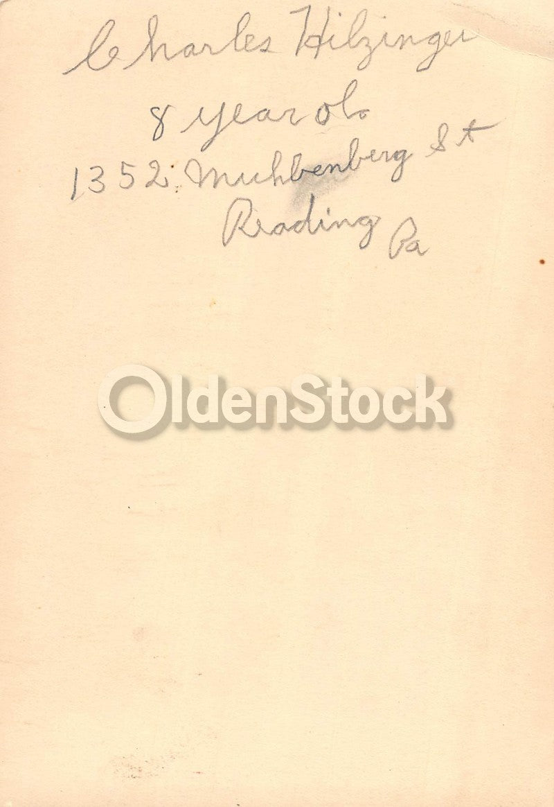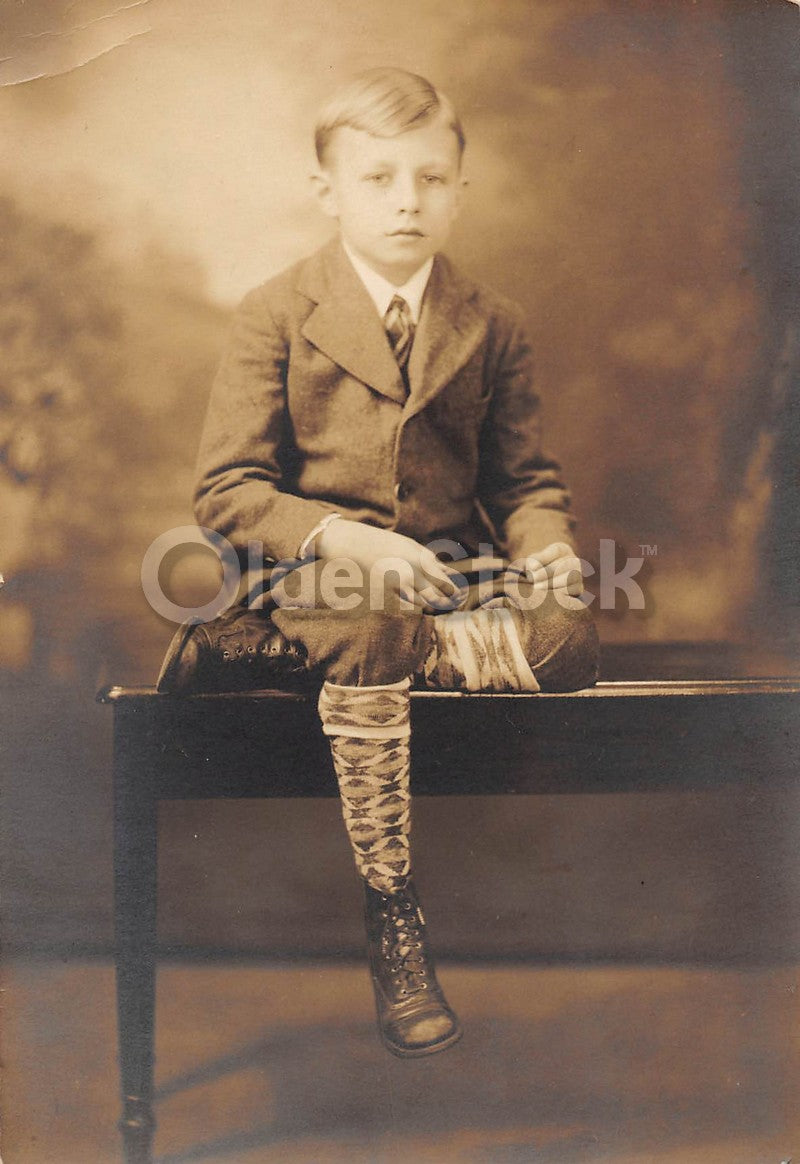 Sullen Little Boy in Suit with Great Socks Reading PA Antique Snapshot Photo