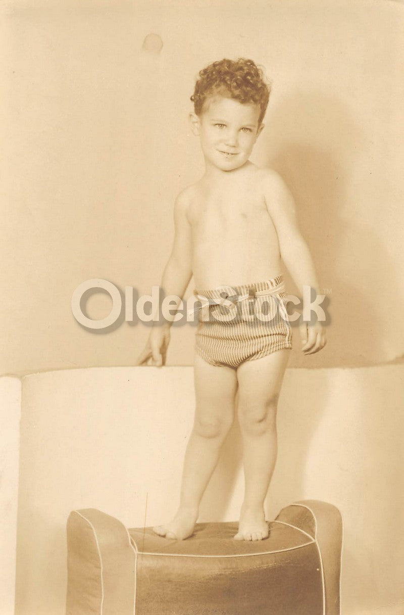 Darling Little Curly Hair Boy Vintage Family Snapshot Photo
