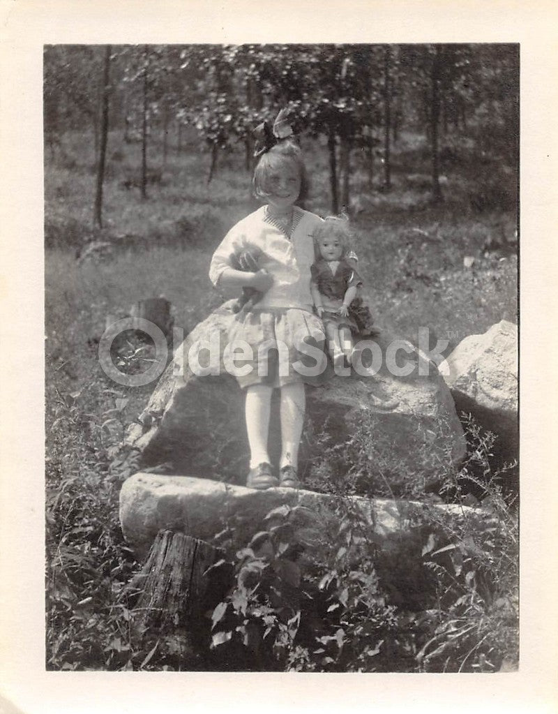 Lovely Big Smile Little Girl with her Doll Antique Snapshot Photograph