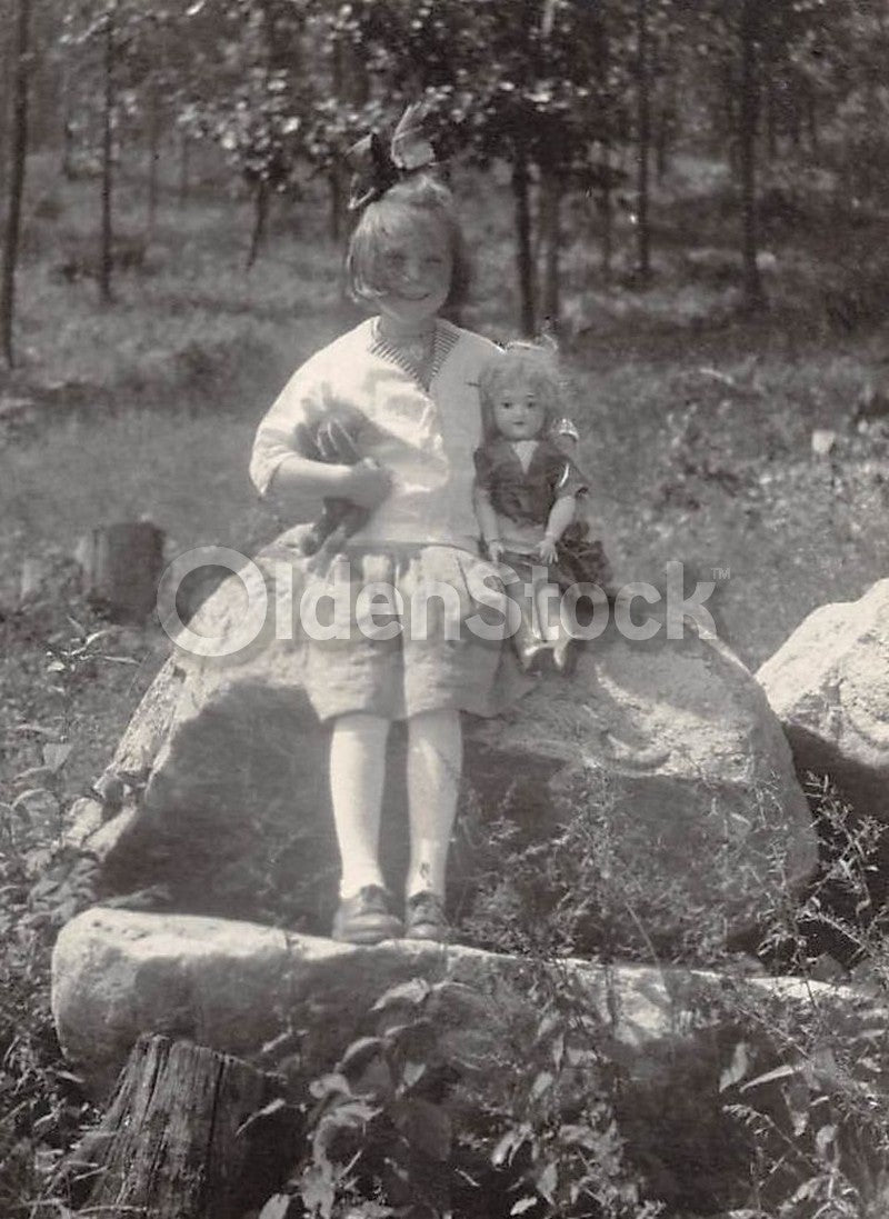 Cute Little Girl with Porcelain Doll Stuffed Animal Toys Antique Snapshot Photos