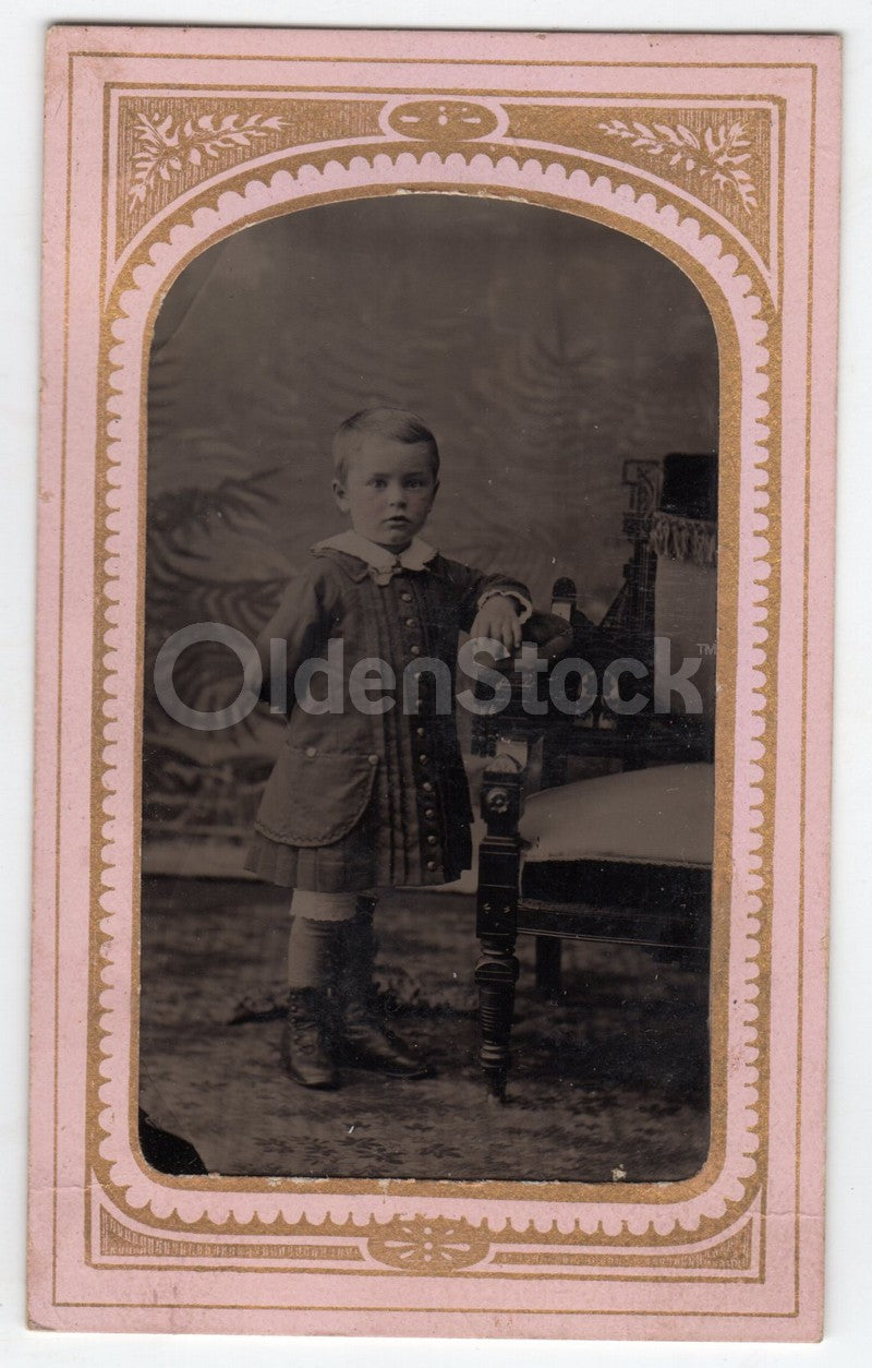 Handsome Little Boy in Cutest Outfit Crisp Antique Tintype Photo