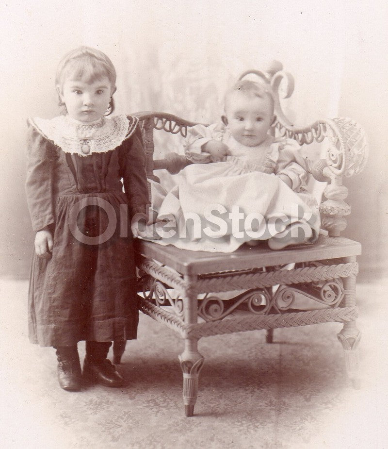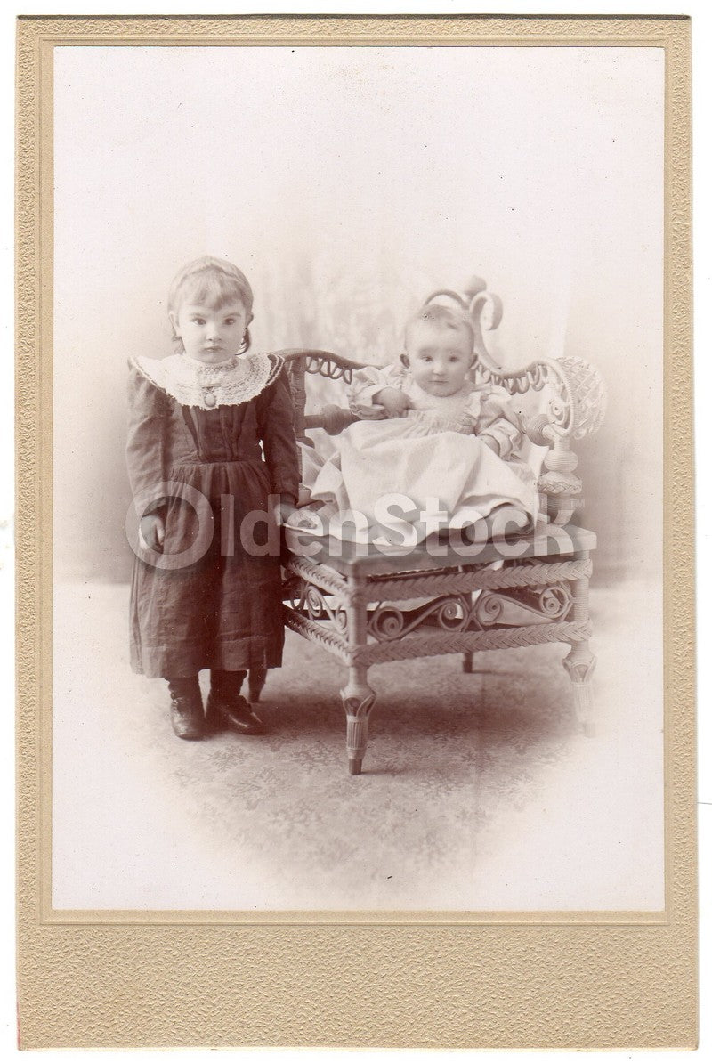Darling Little Girl & Baby Boy Antique Victorian Dress Cabinet Card Photo