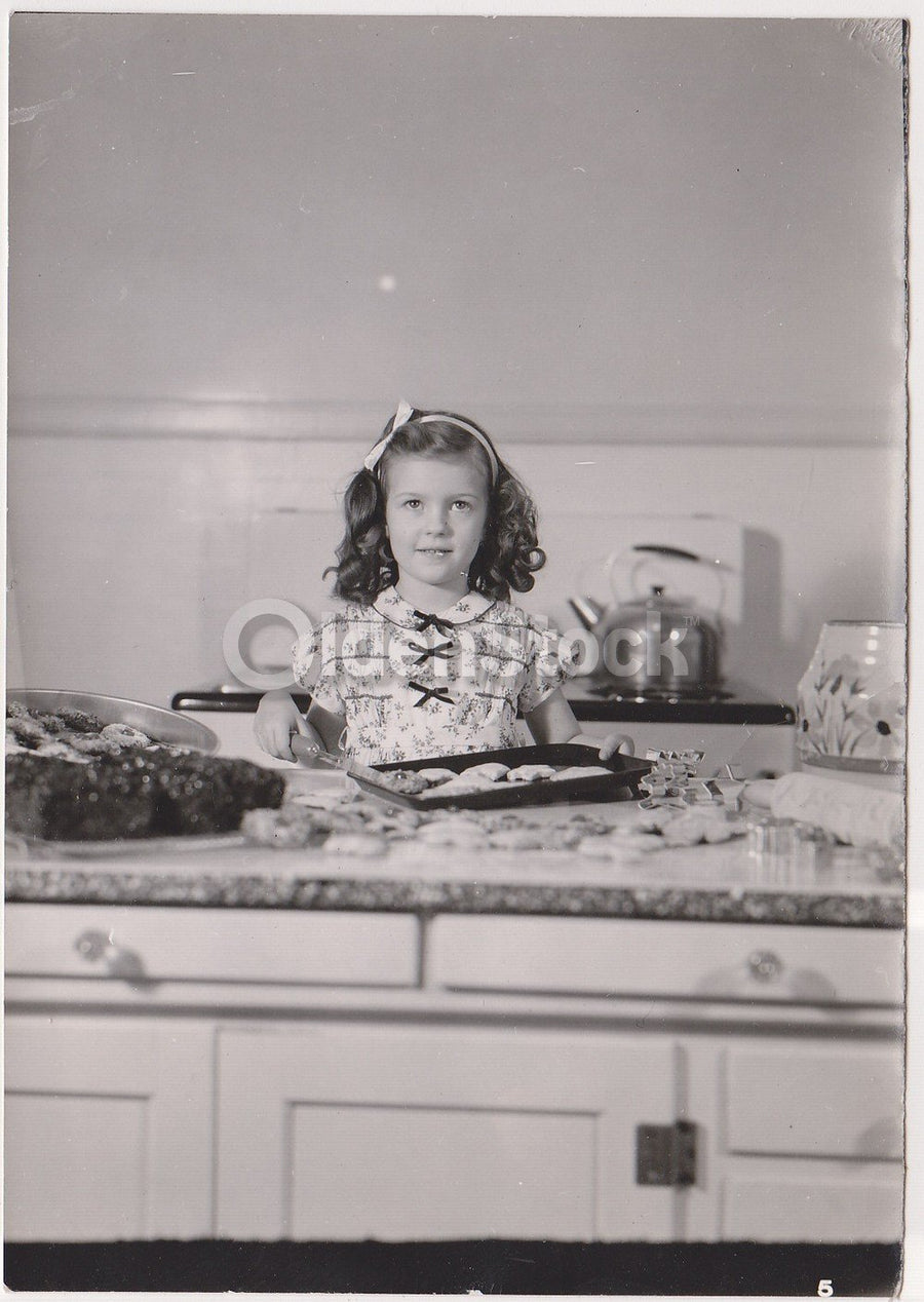 Darling Little Girl in the Kitchen Baking Cookies Vintage 1940s Americana Snapsh
