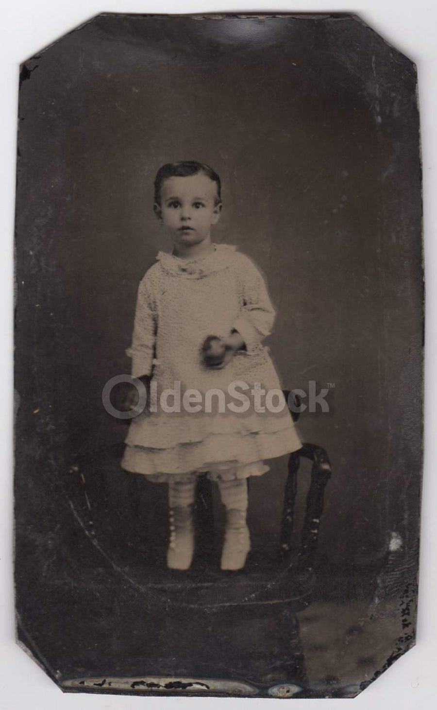 Cute Little Boy in Dress Standing on a Chair Nice Crisp Antique Tintype Photograph