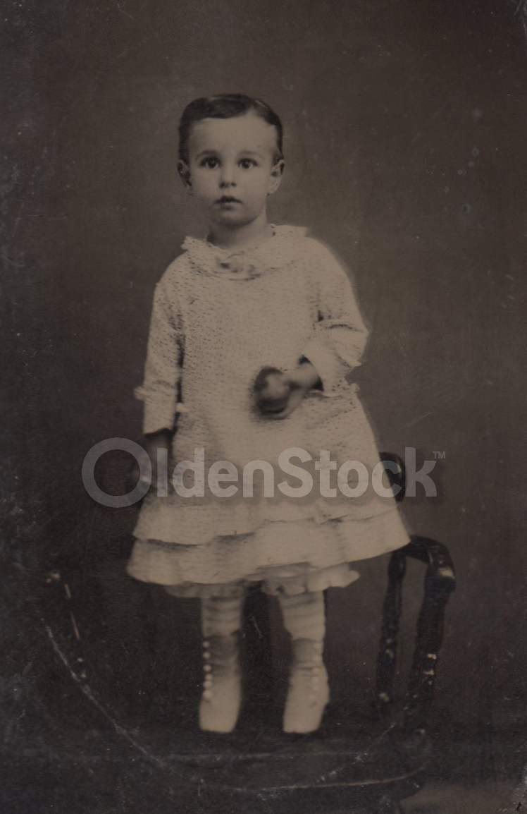 Darling Little House Girl in Fine Dress Crisp Antique Tintype Photograph