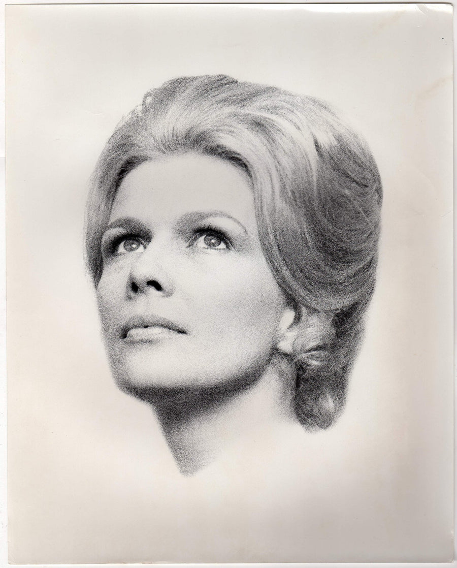 Blonde Girl Updo Hairstyle Fashion Model Vintage 1960s Large Format Headshot Photo