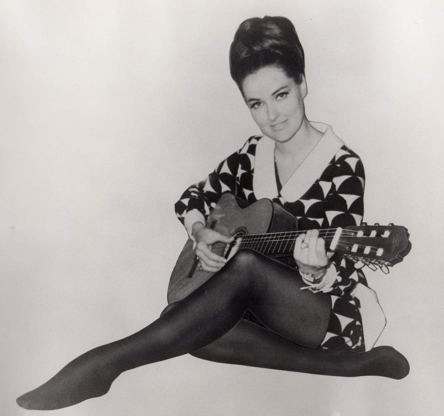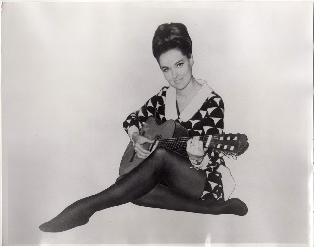 Hippie Female Guitarist Updo Fashion Model Vintage 1960s Large Format Advertising Photo