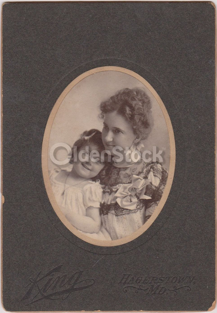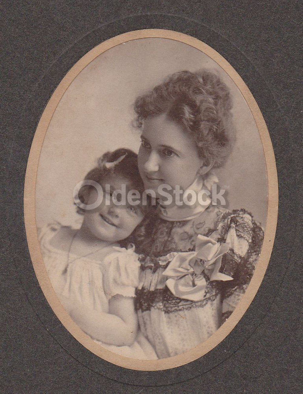 Darling Little Girl Cuddling Mom IDed Antique Mother & Daughter Snapshot Photo on Board