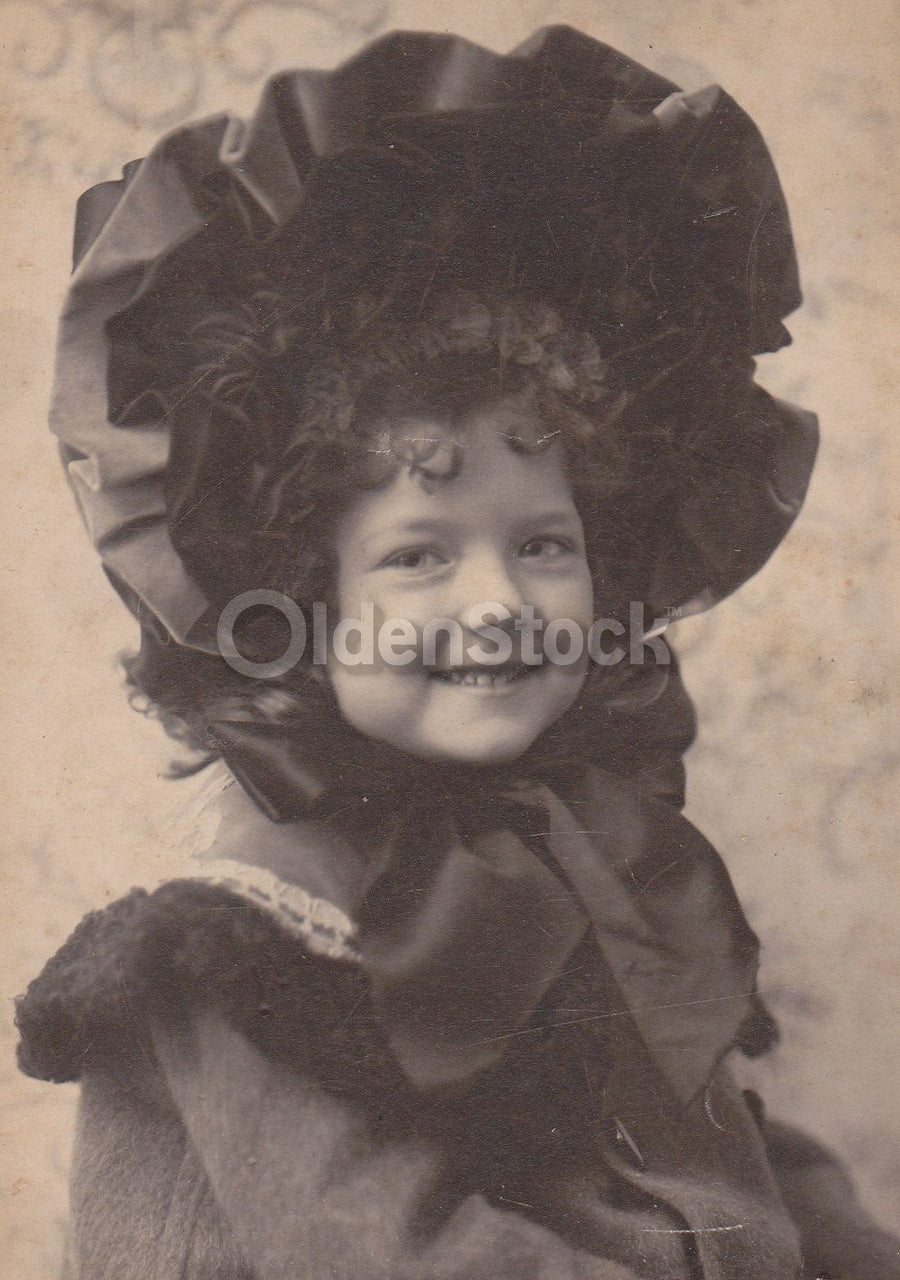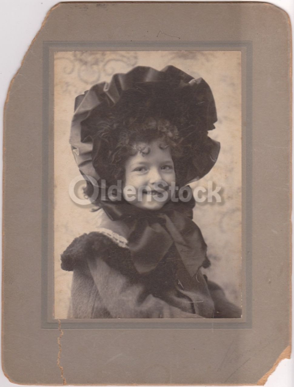 Darling Little Girl Great Smile Fine Bonnet IDed Antique Snapshot Photo on Board