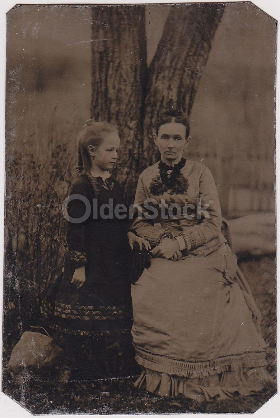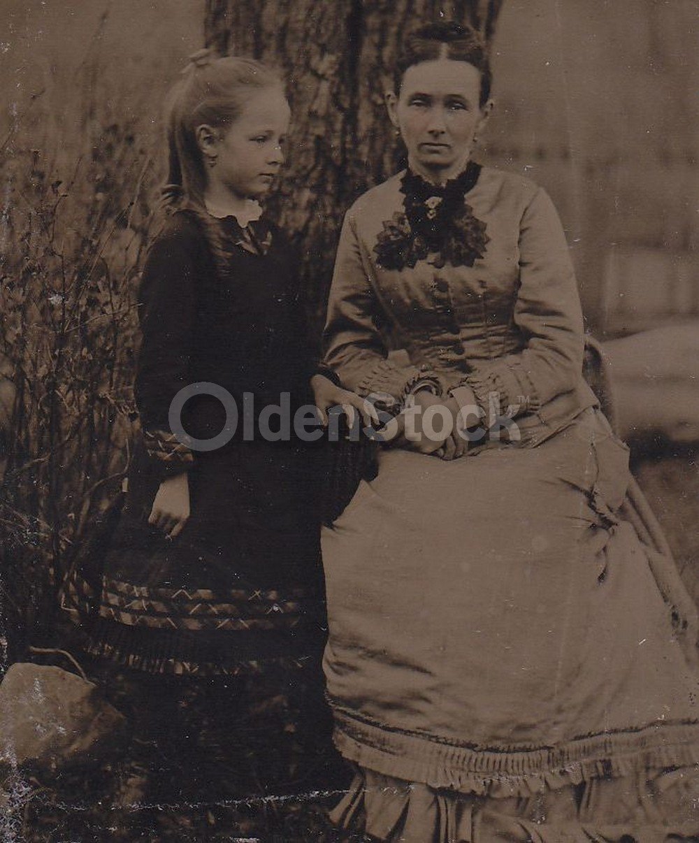 Mother & Daughter Together Outdoors Unusual Side Profile Antique tintype Photograph