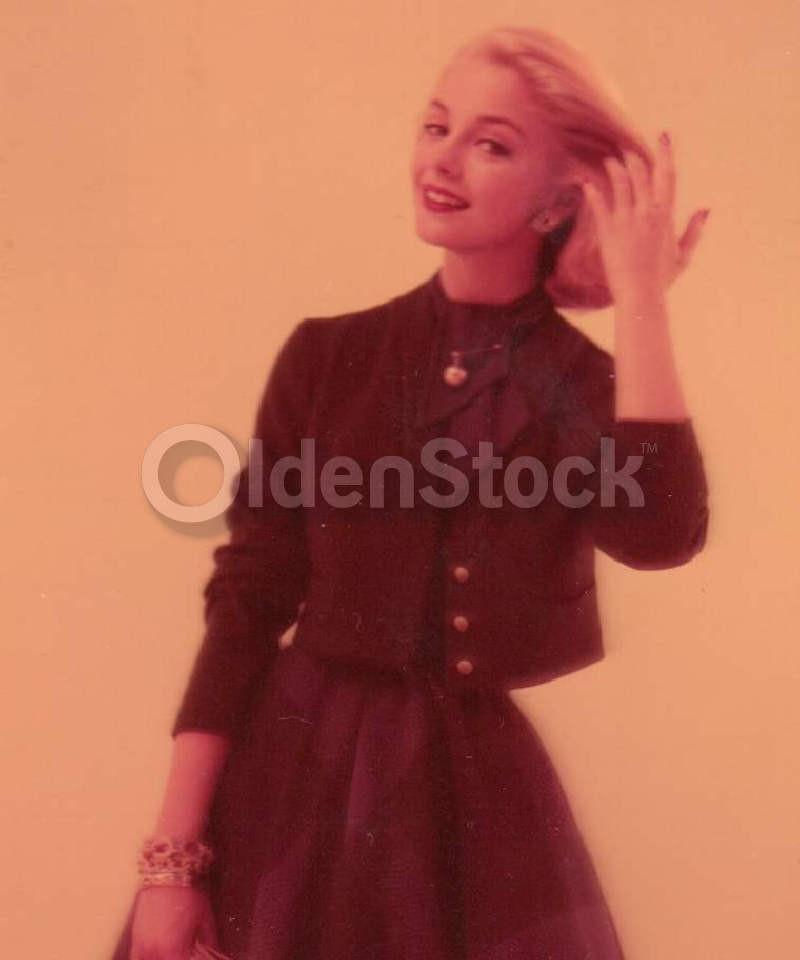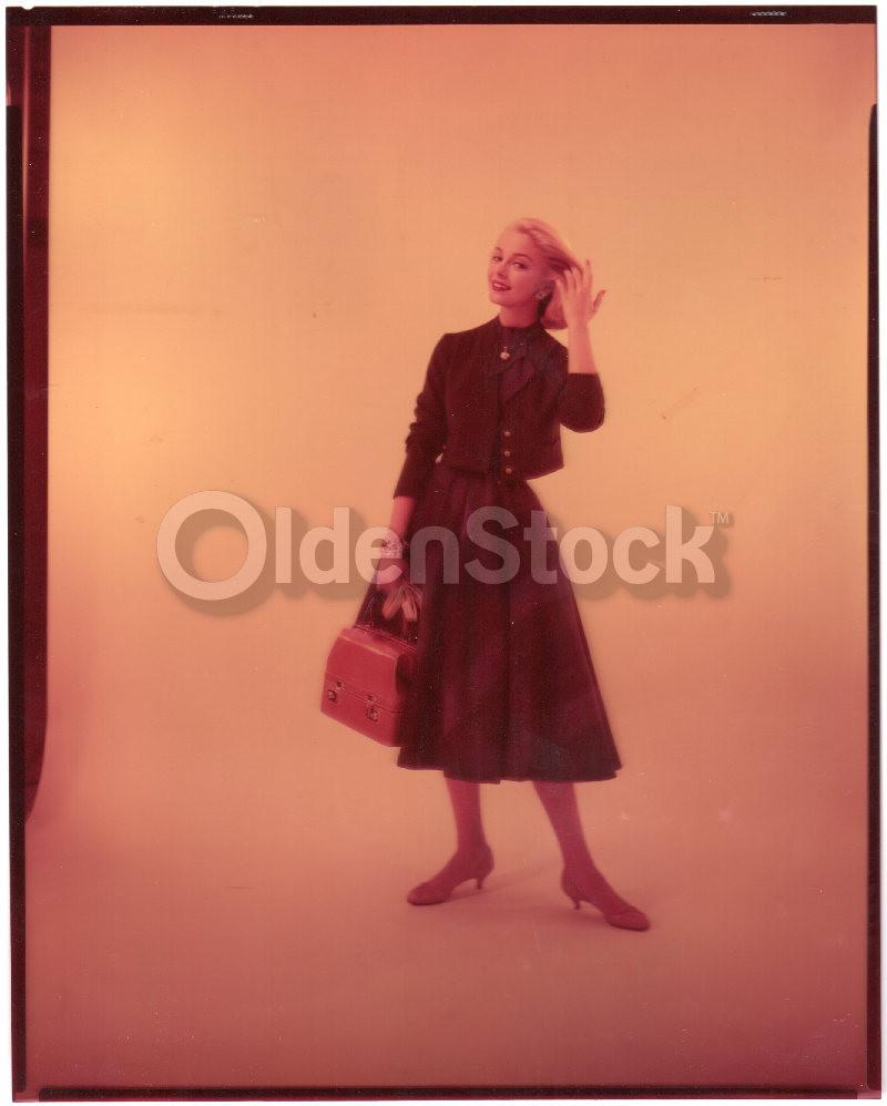 Young Blonde Woman in Tweed Jacket & Skirt Vintage 60s Fashion Photo Negative