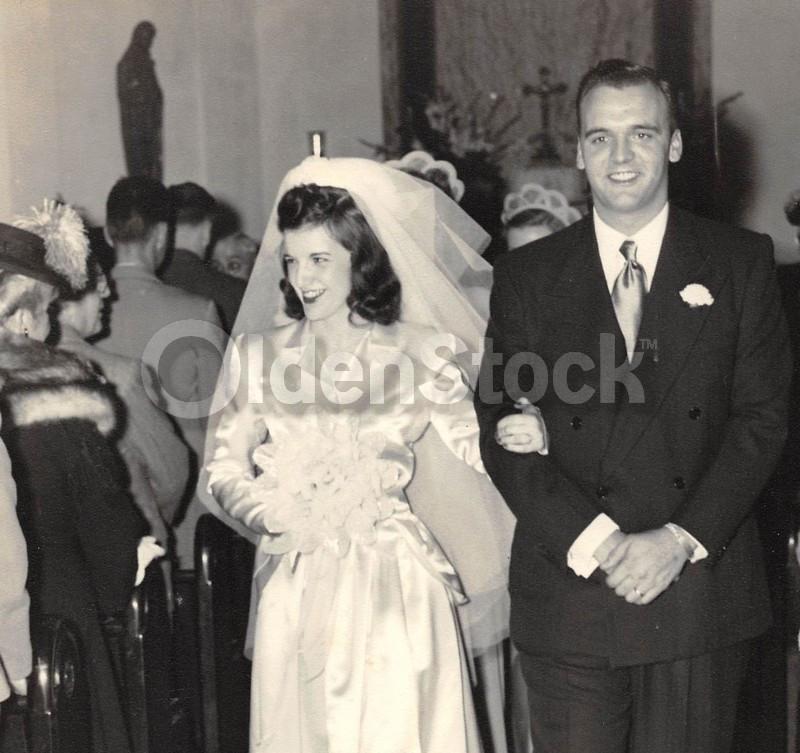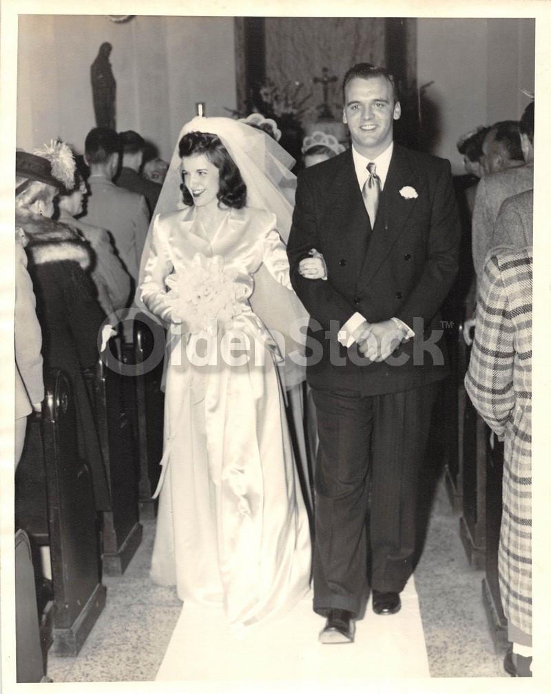 Lovely Young Bride & Groom Vintage 1950s Wedding Dress Photograph