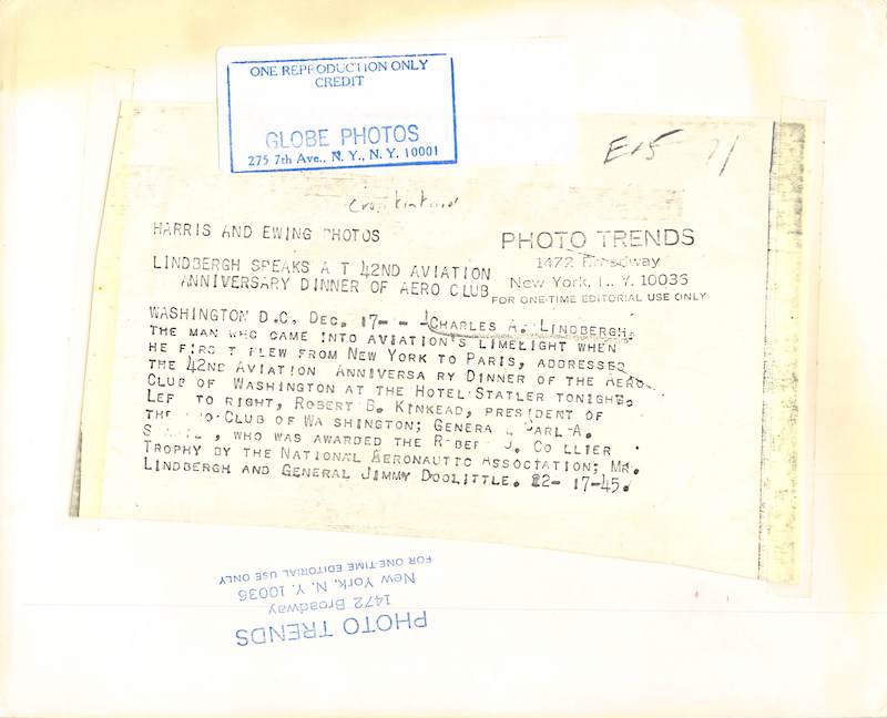 Charles Lindbergh and Jimmy Doolittle Vintage Aviation Club Press Photo