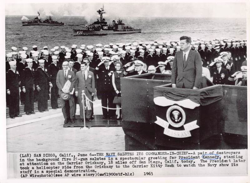 President John F Kennedy JFK Oriskany Ship 21 Gun Salute Vintage Political Press Photo