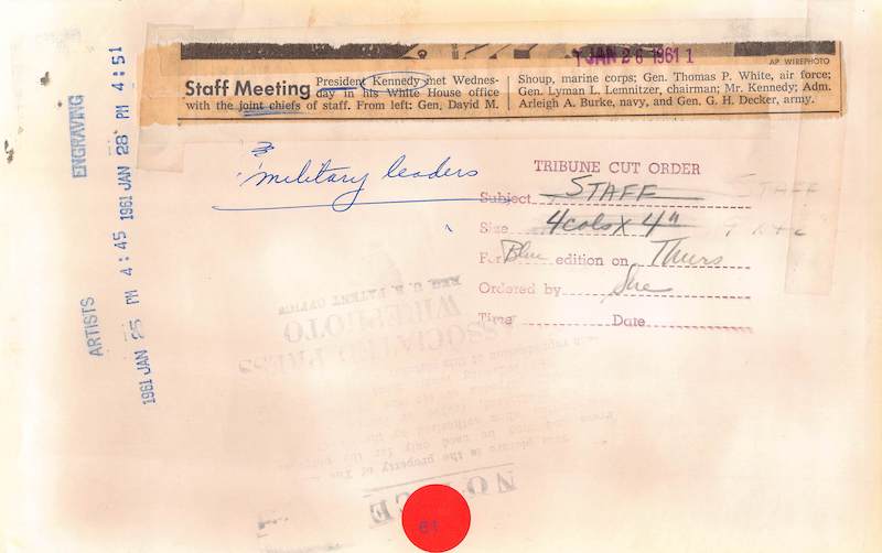 President John F Kennedy JFK Joint Chiefs Meeting Vintage Political Press Photo 1961