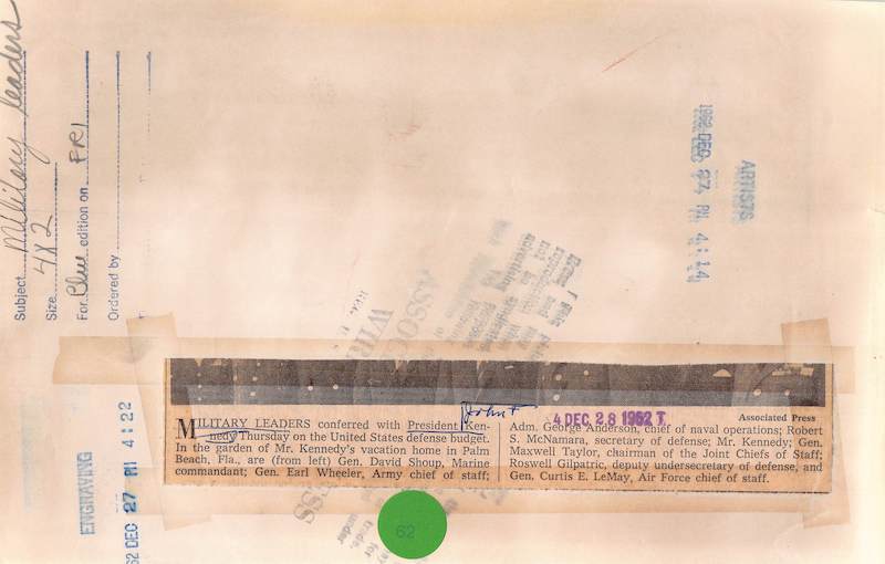 President John F Kennedy JFK and General Lemnitzer Vintage Political Press Photo