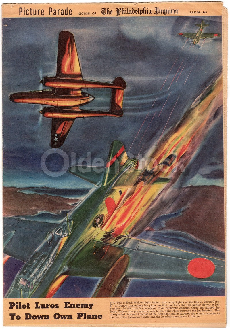 David Corts WWII Fighter Pilot Vintage Graphic Illustrated Newspaper 1945