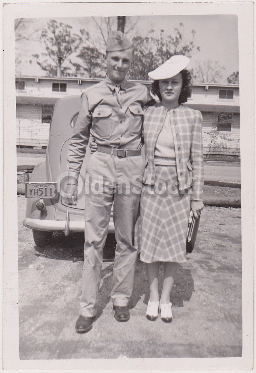 American GI & His Best Girl Posing Proud Vintage WWII Homefront Snapshot Photo