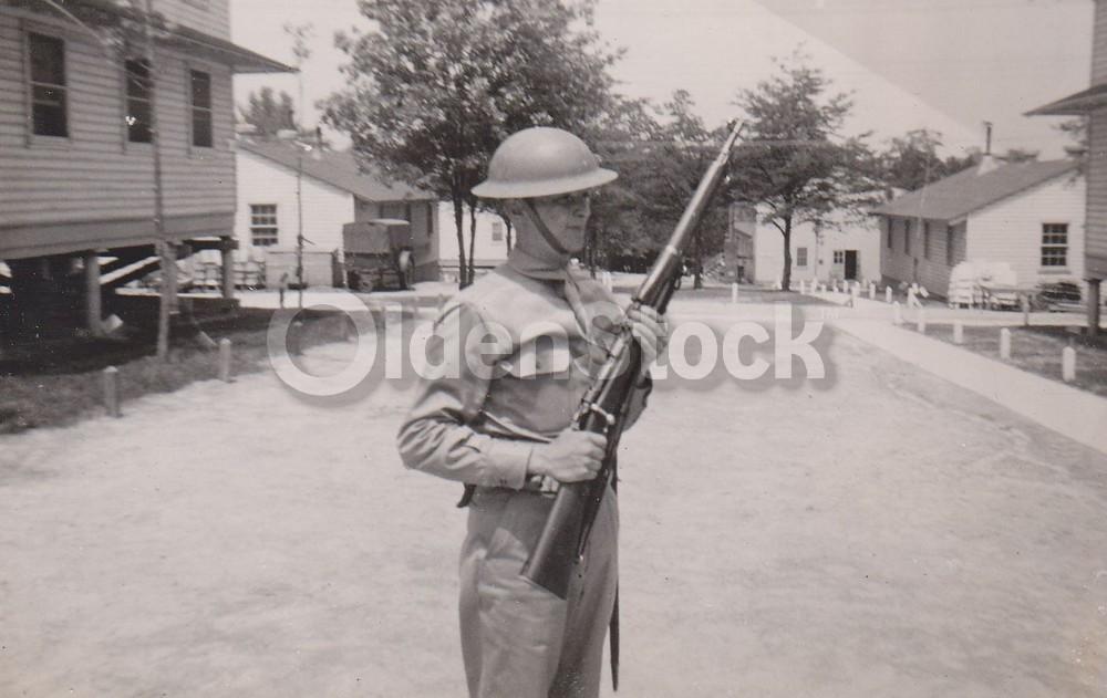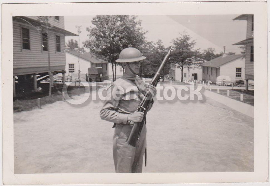 American GI at Attention in Fort Belvedere Virginia Vintage WWII Snapshot Photo
