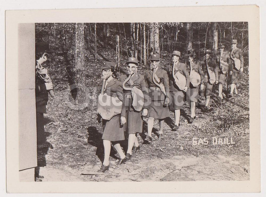 Military Women Gas Masks Drill WAC Training Center Fort Oglethorpe Georgia Vinta