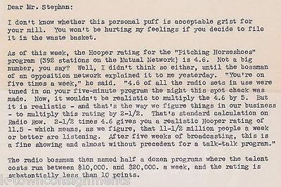 HAGGLES WITH RADIO EDITOR OVER HOOPER RATINGS CALCULATIONS