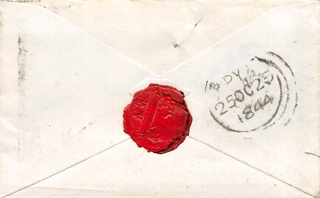 SYDNEY SMITH BRITISH ANGLICAN WRITER ANTIQUE STAMPED AND WAX SEALED POSTAL MAIL COVER WITH #8 CANCEL AND 1844 POST STAMPS