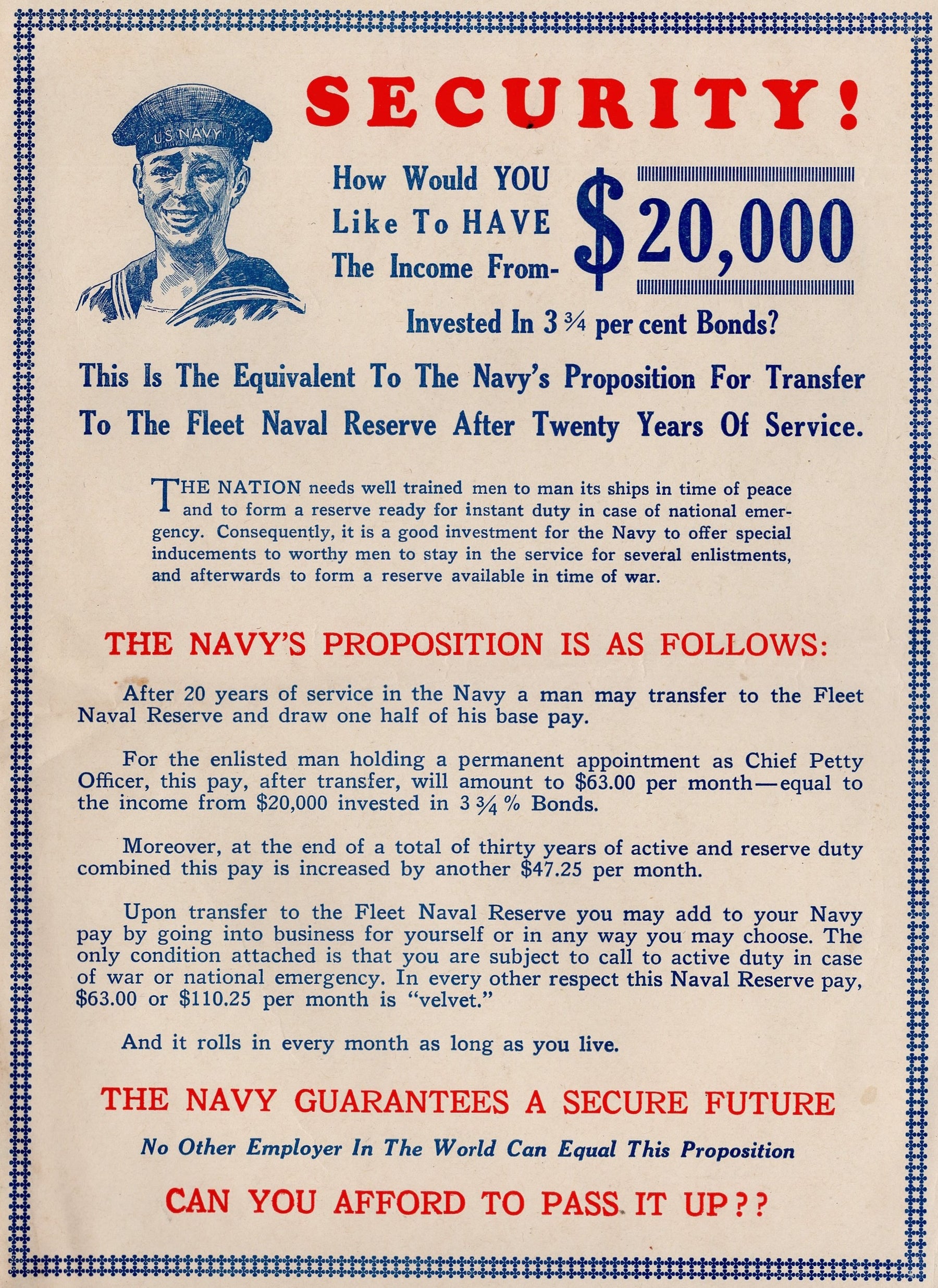 The need for reservists was a matter of survival; with the sudden two-ocean threat, the Regular Navy simply did not have the manpower to staff the burgeoning "Fleet of the Future" without the massive influx of volunteer citizen-sailors recruited through local stations and post offices using advertisements exactly like this one.