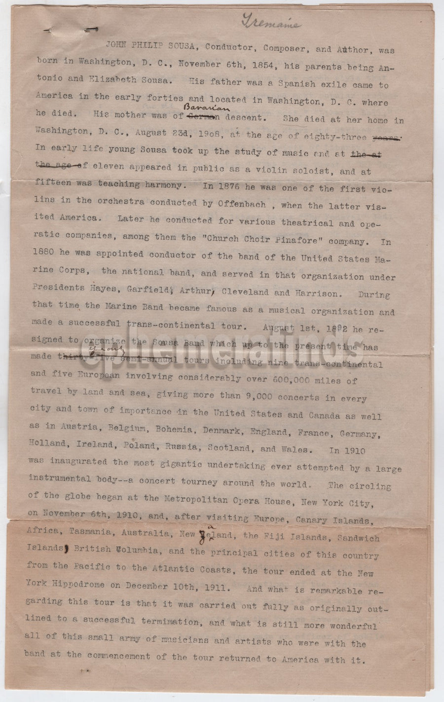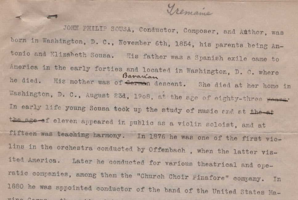 Charles Milton Tremaine Musicologist Original John Philip Sousa Manuscript