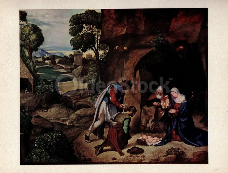 Adoration of the Shepherds Painting by Artist Giorgione Vintage Art Print