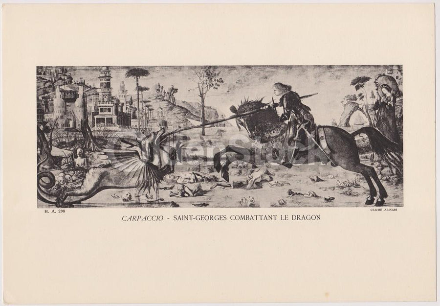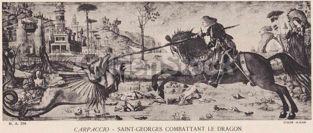 Saint-Georges Combattant Le Dragon Artwork by Carpaccio Vintage Graphic Art Illu